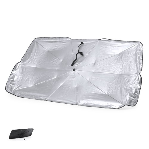Foldable car sunshade. Size 140x78cm. With manual opening mechanism and polyester pouch included.
