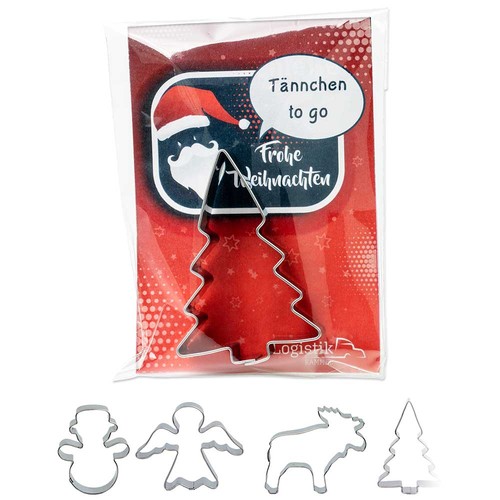 The baking shapes, made of stainless steel (dishwasher-safe), are available in different designs, each packaged in the promotion sleeve, with your advertising on the double-sided promotional inlay.