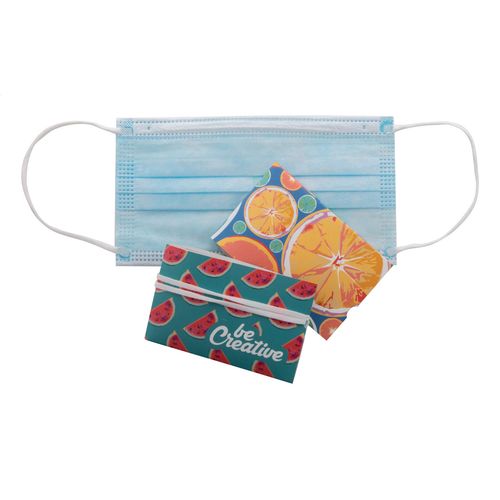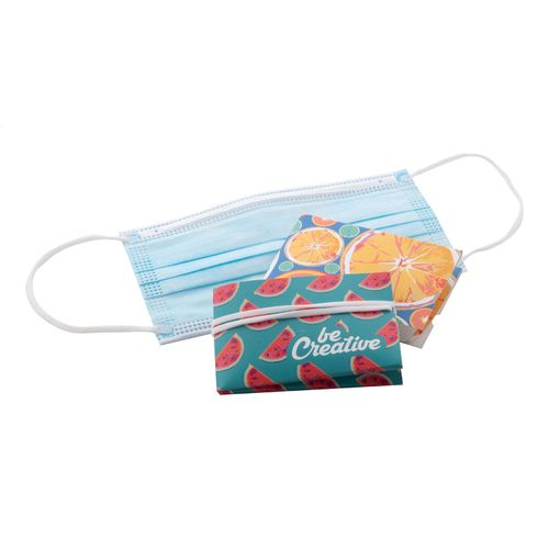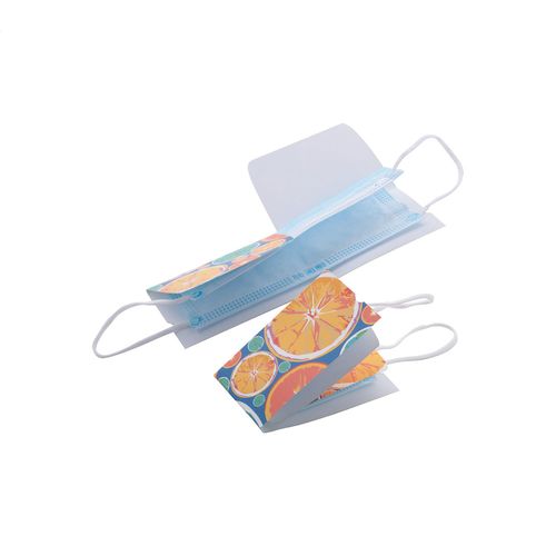 Practical, foldable case for disposable / surgical face mask in paperboard. Price includes full colour printing on front side. MOQ: 250 pcs.