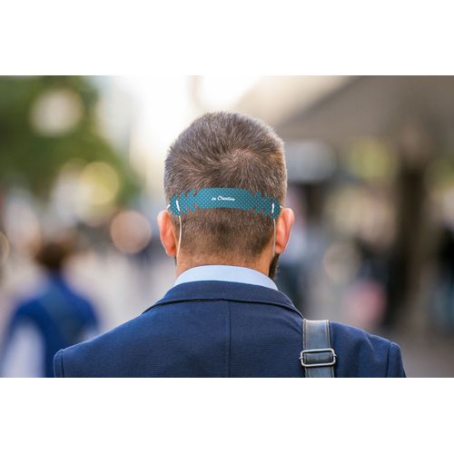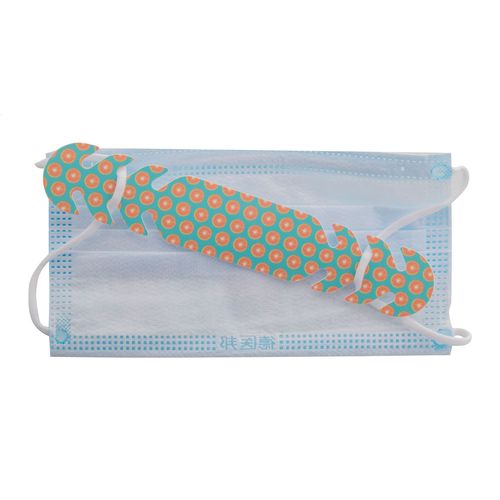 Custom made, full colour printed face mask extender in PP plastic. It is designed to release pressure caused by mask earloops. With 3 positions for 8, 11 and 14 cm extension. In universal size for adults. Price includes UV-LED printing on one side. MOQ: 2
