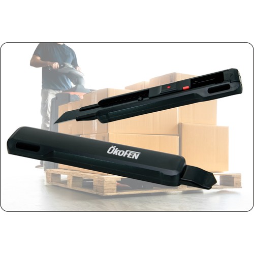 Elegant quality knife inside black ABS housing with very large advertising space. Locking mechanism on slide barprevents accidental extension of the black SK2H snap-off blade. This premium quality blade made of high-qualitycarbon steel for unexcelled cutting sharpness and long life.Inside a black stainless steel rail 430 with return stop, the blade locks precisely in each position. Blade extension upto 80mm. End cap to snap off the blade elements. 2 replacement blades stored inside housing.Eyelets for attaching to chains or lanyard.
