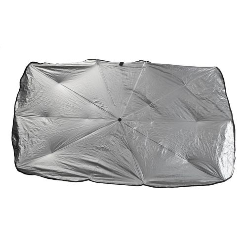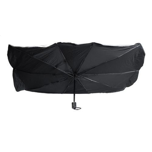Foldable, car sunshade manual umbrella for windshield with metal frame. In polyester pouch.