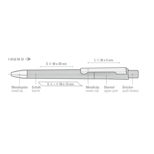 Retractable ballpoint pen with opaque matt housing. Heavy metal tip and metal clip chrome plated.