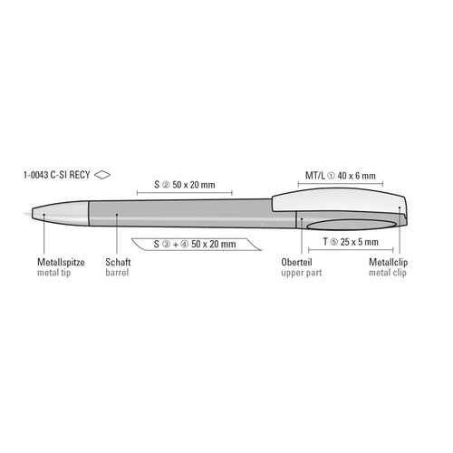 Twist ballpoint pen with opaque mat housing made from 100% recycled post-consumer plastic. Metal clip and heavy metal tip matt chromed. The model is labelled with the recycling mark. Thanks to the ClimatePartner-certified production, the uma CHILL C SI RECY makes an additional sustainable contribution to the protection of the environment. Due to the special nature of the material (post-consumer recycled plastic) colour variations may occur during the production process.