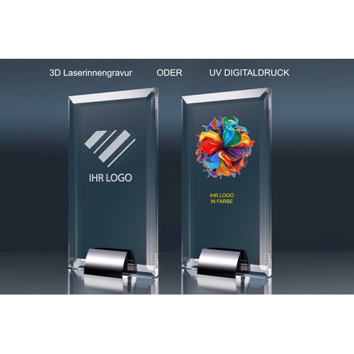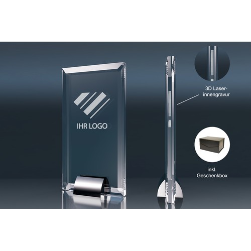 inCrystal-Trophy "METRIX" – Glass Trophy with Facet and Metal Base.