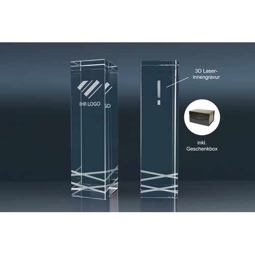 Crystal-Trophy "Royal" – Rectangular elegant glass trophy with sandblasted design lines.
