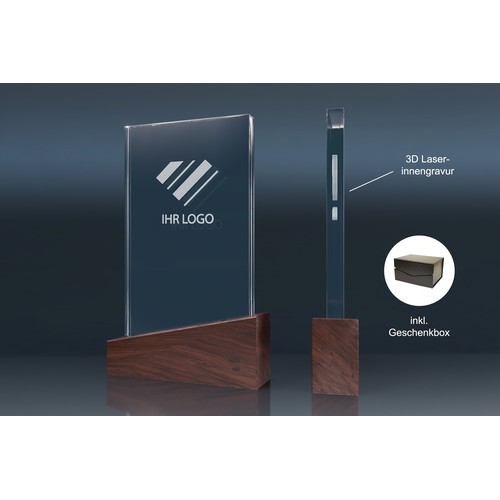 The Trophy WOODEN SLOPE is an elegant glass award that combines modern design with natural materials.