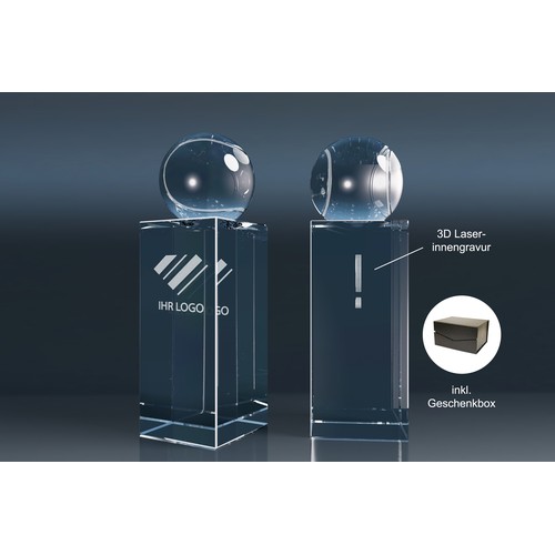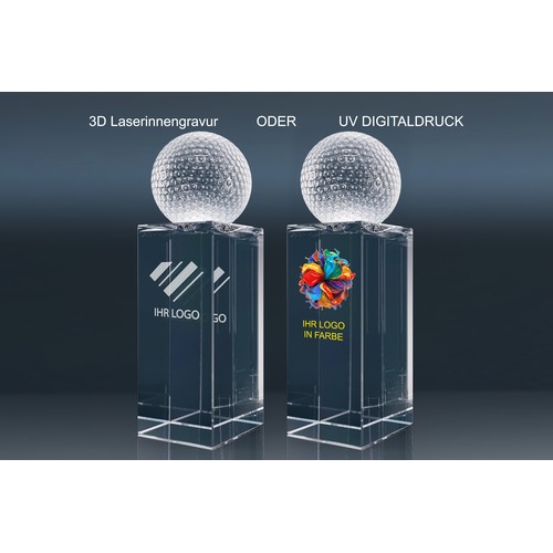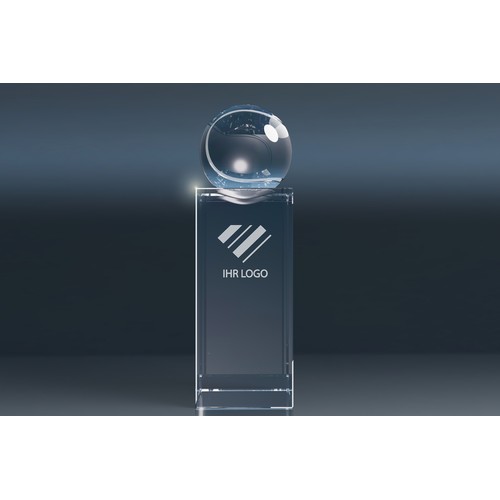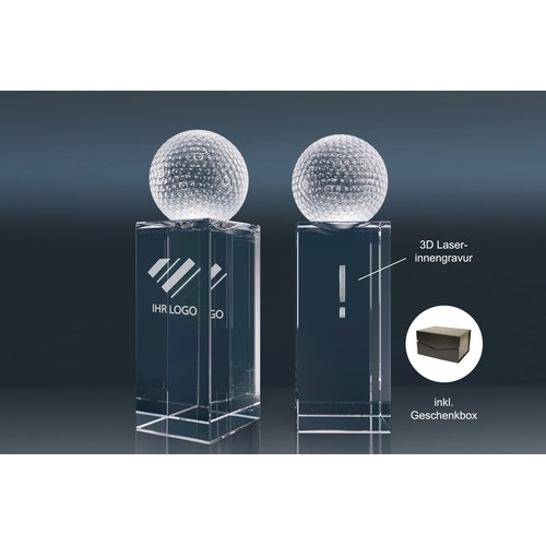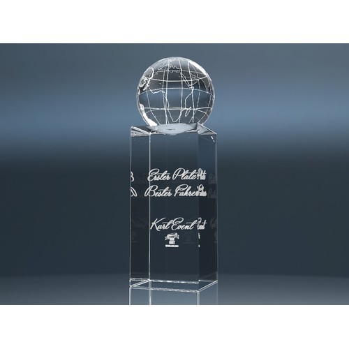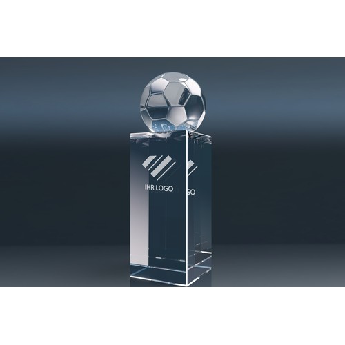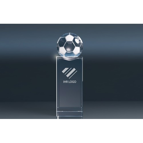 Crystal Trophy "World Champion" – This elegant glass trophy features a football, tennis ball, golf ball, or globe.