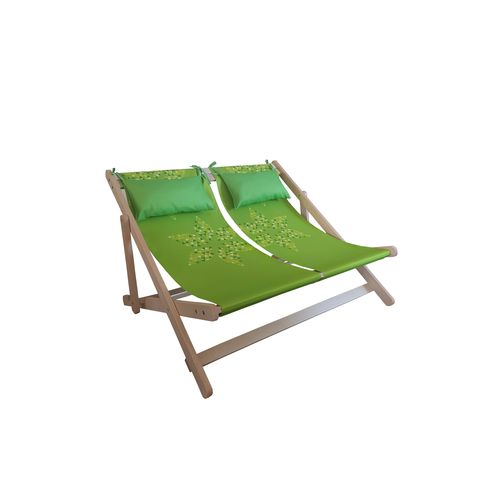 Deckchair version for two. Enjoy the comfort together. Changeable cover. option with pillow. Composite construction produced out of quality beech wood. Positional back up to three positions.