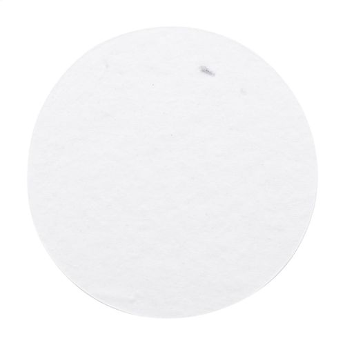 Custom made, seed paper covered round sticky notepad. Includes 50 sheets of recycled paper sticky notes. Price includes full colour printed outside cover. MOQ: 100 pcs. With assorted wildflower seeds.
