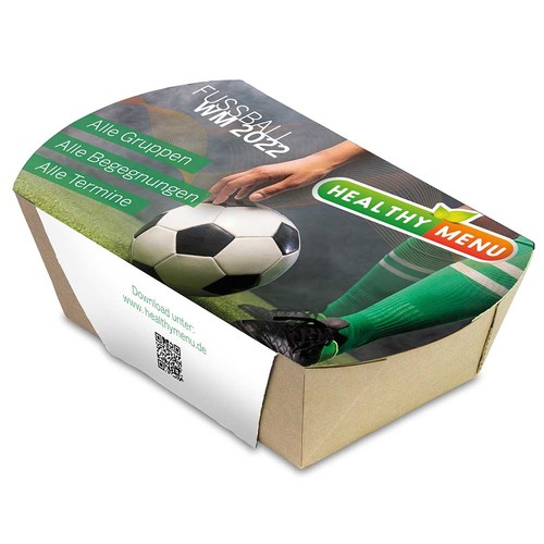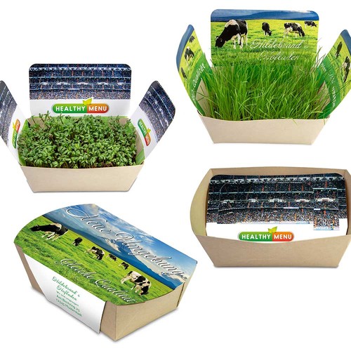The Plantodrom offers event character in miniature format. The word fragment "drome" is associated with large stadiums, halls, buildings and events. And that's exactly what the miniature garden is made for: with attached, thematically matching side parts, for example, a football or sports stadium, a farm, an Easter nest, a colouring picture for children or many other buildings and containers are created that can be designed to match the brand, an event or a seasonal theme. In addition, another trend is focused on: Healthy food is in the customers' focus. Cress, basil, mixed herbs or spicy peppers can be grown in the bamboo paper bowl. The Plantodrom is supplied with a peat tab as soil and a bag of seeds. The individually designable plug-in parts are ready and waiting under the paper band, which is individually printed on all sides, and perfectly convey the advertising message.