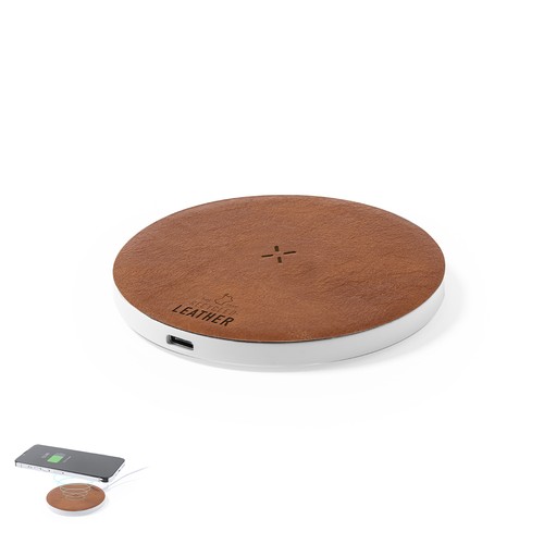 15W wireless charger, made in a combination of RABS and recycled leather. Compatible with devices equipped with Qi wireless charging technology. With non-slip base, including Type C charger cable and instruction manual in English and Spanish. Presented in an individual kraft design box. RABS or Recycled ABS material and recycled leather come from the recycling of items at the end of their lifespan. The recycled materials used include RCS certification, which guarantees their recycled origin. Manufactured according to RoHS standards and in compliance with the following safety requirements: Overheating protection system. Over-charge protection system. Blocking system to prevent short circuits.