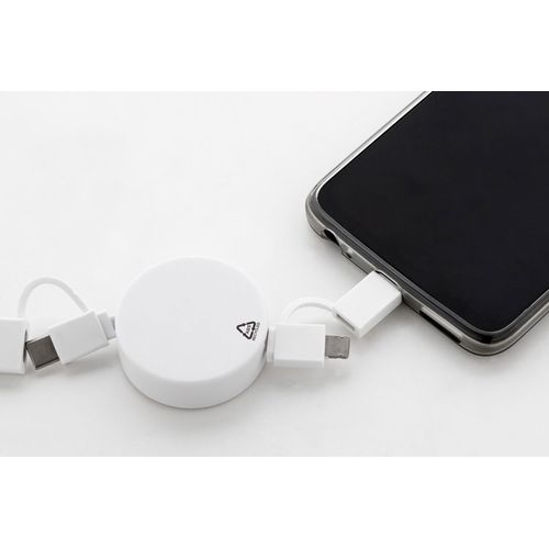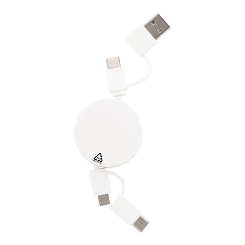 Telescopic USB charger cable in recycled ABS with micro USB, USB-C and Lightning connectors. With USB and USB-C inputs.