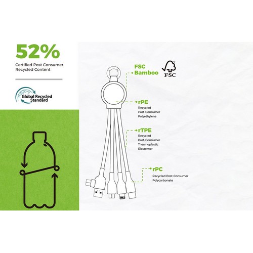 This 4-in-1 charging cable combines a bamboo housing,cork loop,and braided cords made from recycled PET bottles (rPET) to offer an environmentally friendly solution for your tech accessories. Its natural look and renewable materials align perfectly with brands embracing eco-conscious values—delivering both function and sustainability in one premium promotional item.