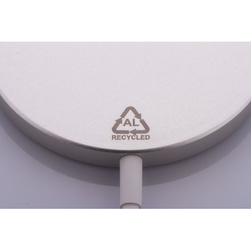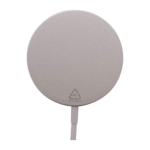 Magnetic wireless fast charger (10W) in recycled aluminium housing. Compatible with iPhone® 12 or newer. Including USB-C charger cable.
