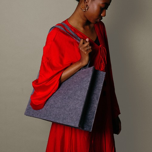 Long-handle bag made in 100% RPET phelt of 2 mm. With RPET certificate.