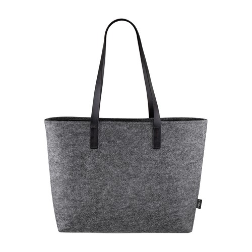 Bag made of 100% RPET felt, with synthetic leather handles.