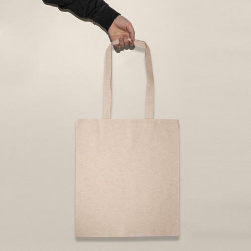 Long handles tote bag made of 140gr / m2 recycled cotton.