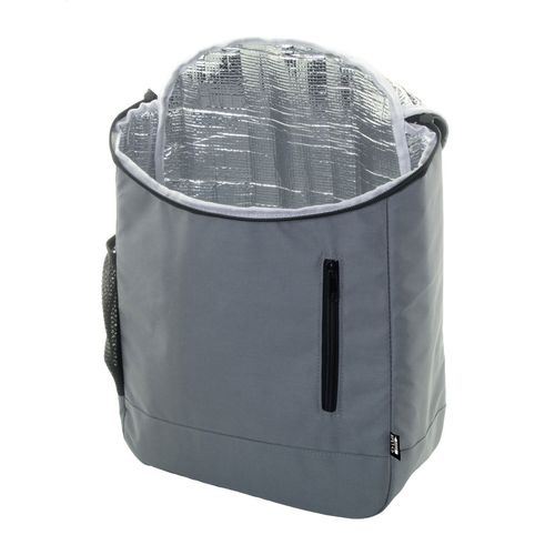 RPET cooler backpack with aluminium padding, mesh side pocket, zipped main compartment and front pocket. 600D RPET polyester, with distinctive RPET label.