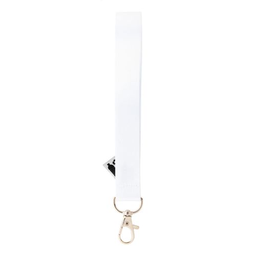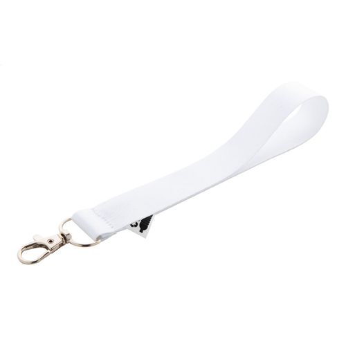 Custom made, RPET polyester keyring with metal carabiner. With inside RPET label and sublimation printed graphics on both sides. MOQ: 100 pcs.