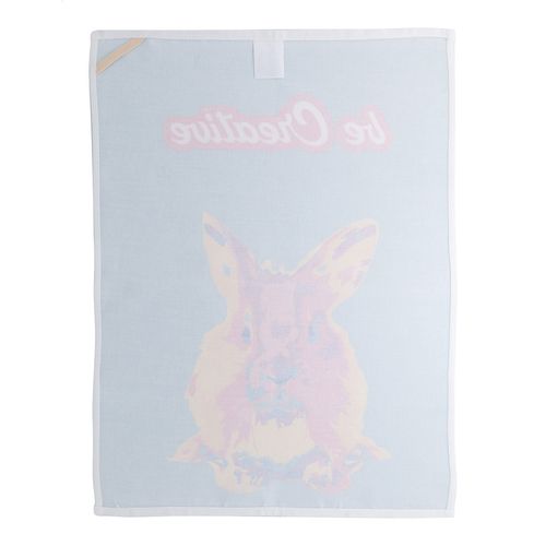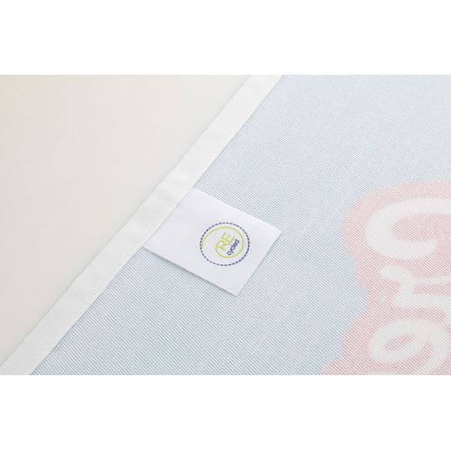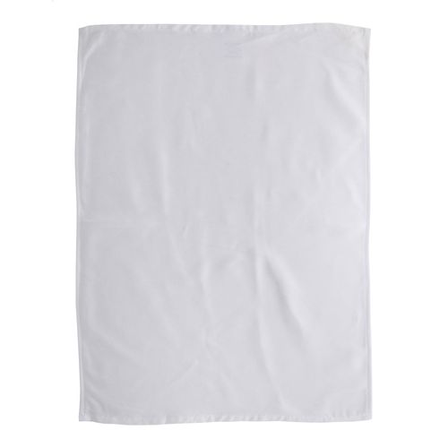 Woven twill kitchen towel with hanger and sublimation printed graphics on front side. 50% RPET front and 50% cotton back, 220 g/m². Price includes sublimation printing. MOQ: 25 pcs.