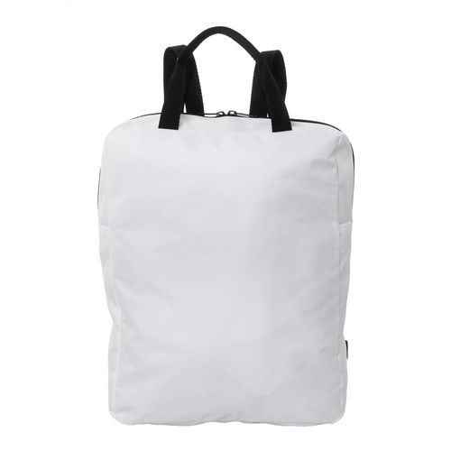 Custom made RPET slim laptop backpack with zipped laptop (15") compartment. With all over sublimation printed graphics. 600D RPET polyester with distinctive RPET label. MOQ: 25 pcs.