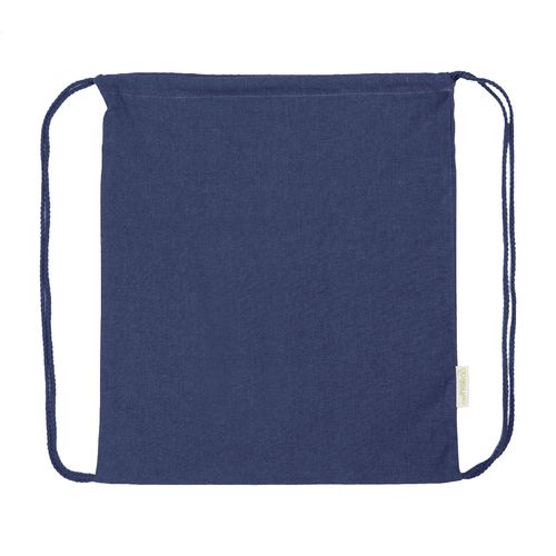 Drawstring bag in 70% recycled cotton and 30% RPET polyester, 140 g/m². With distinctive recycled cotton label.