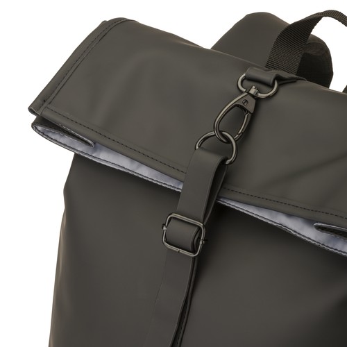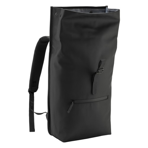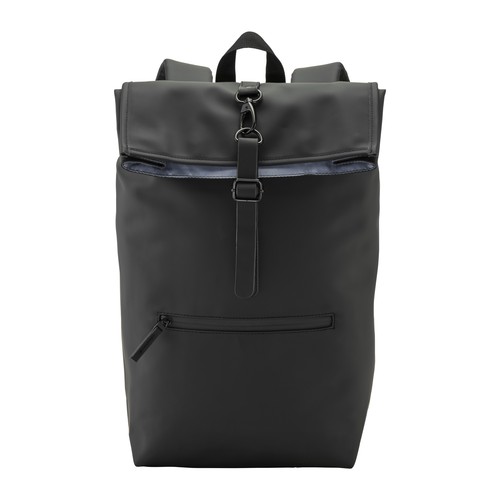 Recycled water-resistant Soft PU (15") backpack. Padded inside pocket for notebook. Large main compartment, padded back and shoulder straps with breathable material