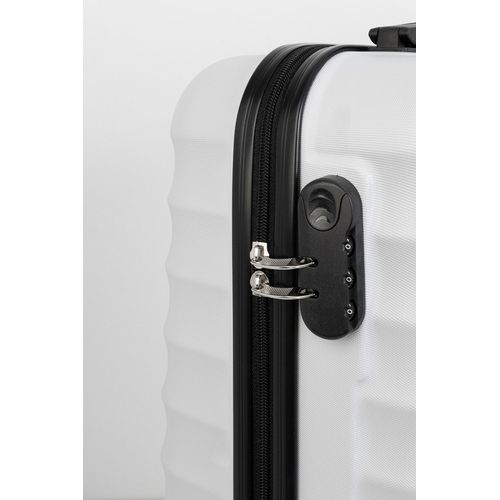 20 inch, hard-shell carry-on trolley bag in RPET with 4 wheels, telescopic handle and TSA combination lock. With RPET inner lining and elastic fastening straps. With metal plate for logo engraving