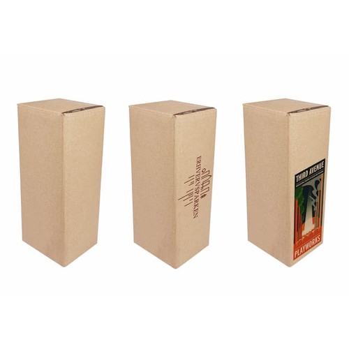 Presentation boxes for mugs and bottles in kraft corrugated recycled cardboard. Self-assembling and customizable. Add a name in each box