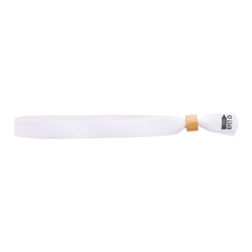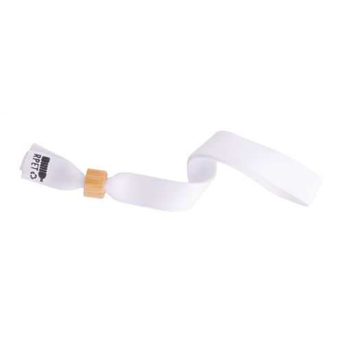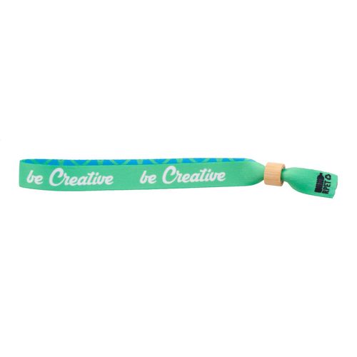 Custom made, RPET polyester festival bracelet with bamboo safety lock. With sublimation printed graphics on both sides. MOQ: 100 pcs.