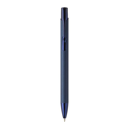 Recycled aluminium ballpoint pen with rubberized body and coloured shiny metallic finish parts. With special coating for mirror engraving matching the metallic parts. With blue refill.