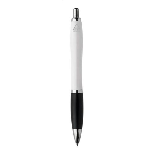 Recycled ABS plastic ballpoint pen with white barrel, coloured grip and chrome parts. With blue refill.