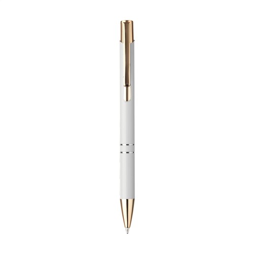 WoW! Blue ink ballpoint pen made from recycled aluminium with a sturdy rose gold clip/pressure button, also made from recycled aluminium. The pen has elegant rose gold and silver accents, making it a strikingly chic appearance. RCS-certificated. Total recycled material: 94%. By using recycled aluminium, fewer new raw materials are used during the production of this product. This means less energy consumption and less use of water.