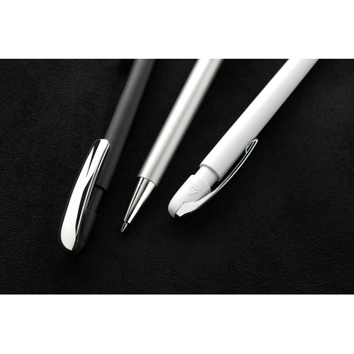 Ballpoint pen with stunning chrome metal clip design. Including ca. 1200m writing length German Dokumental® blue ink refill with TC-ball for ultra smooth writing. Made with 55% recycled ABS RCS Certified.