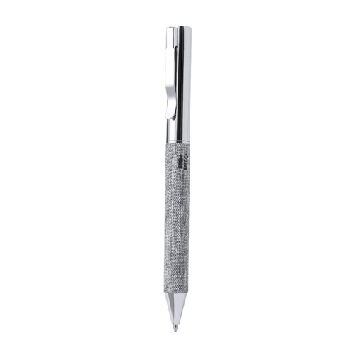 Ball pen made in chrome-plated metal, with RPET polyester coated barrel, made from recycled plastic to encourage the reuse of plastic waste and help the sustainability of the planet. Stylish metal clip and matching accessories, twist mechanism and blue ink. With RPET distinctive on the barrel and presented in a kraft case with matching sleeve.