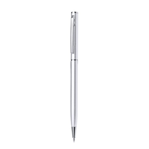 Ball pen with recycled Aluminium barrel. Metal clip and chrome plated fittings, with swivel mechanism and blue ink. With recycled Aluminium logo. Recycled Aluminium is a material with almost infinite recycling possibilities, keeping its original properties and consuming less energy during this process.GRS Certification (Global Recycled Standard), which guarantees the recycled origin of the material used to manufacture the product.