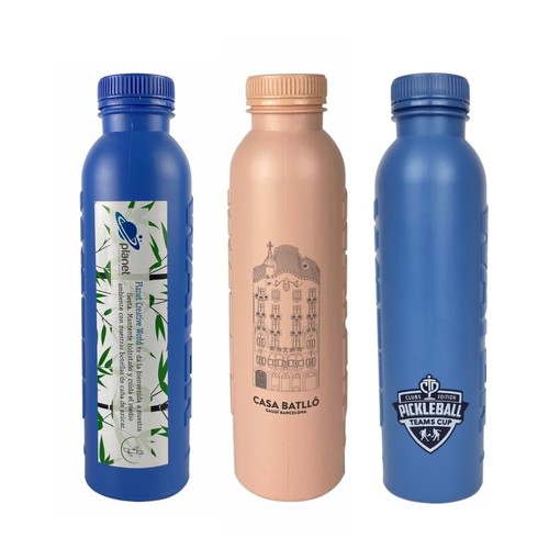 Available in pink, white, light blue and indigo blue, this 500ml bottle is infinitely reusable. BPA free and dishwasher safe. With spring water and making a contribution with every bottle for clean water in third world countries. 100% reusable, recyclable and stylish. The bottle is embossed with the word WATER on the sides, making it an attractive bottle. Also available in CITY version with city names on the sides, look for your bottle from Barcelona, London, Paris, Rome, Berlin and Amsterdam. It can be personalised with a label, direct print or laser. The real reusable bottle! Contact us if you can't find what you need or if you need an urgent delivery.
