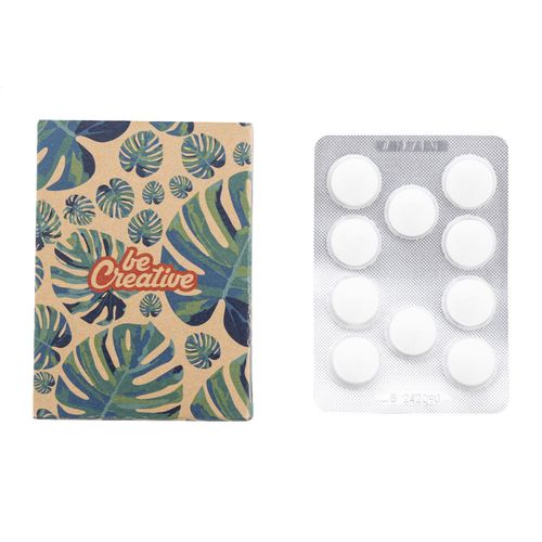 10 pcs large sized mint candies in blister with custom made, full colour printed kraft paper box. MOQ: 100 pcs.