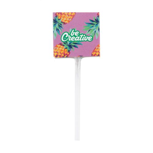 Multi-fruit flavour lollipop (8 g) in custom made, full colour printed paper box. MOQ: 100 pcs.