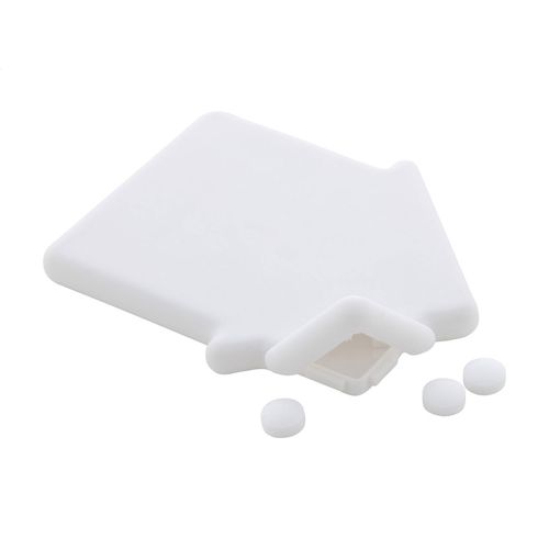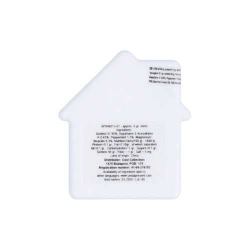 House shaped plastic mint dispenser with approx. 8 grams of sugarfree menthol candies.