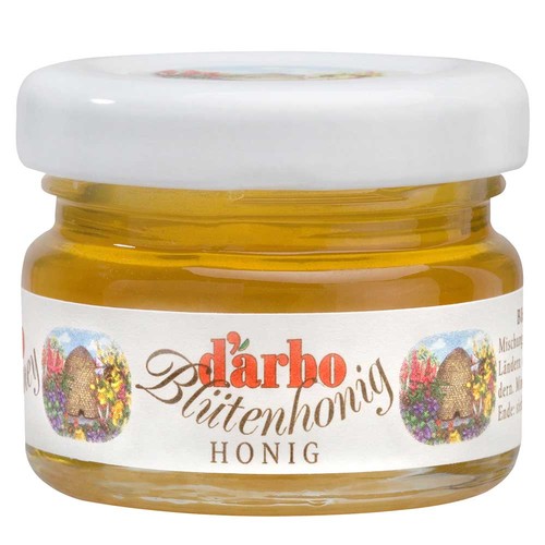 The cute honey set allows customers to enjoy delicious, natural honey. The small honey jar in the set with the wooden honey spoon, in a customisable gift box, becomes a representative promotional Christmas present. Sweet indulgence that melts in your mouth - that's our honey set. It contains 28g of honey.