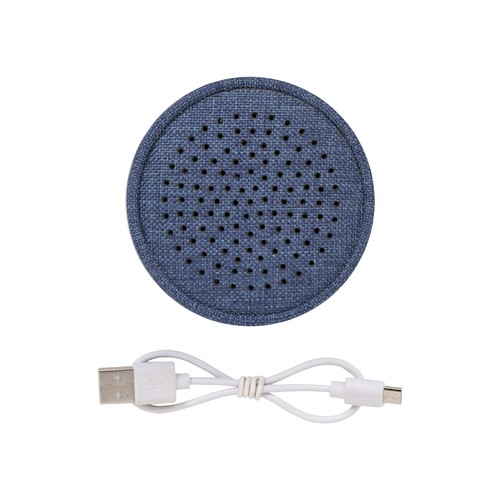 R-PET bluetooth speaker v 5.0 with microphone for hands-free calls. Standard charging cable and 300 mAh lithium battery included. Output 3W, Input DC 5V. Autonomy about 3 hours.