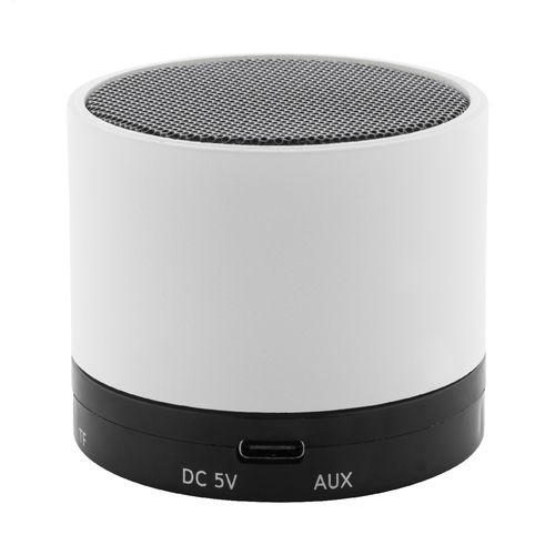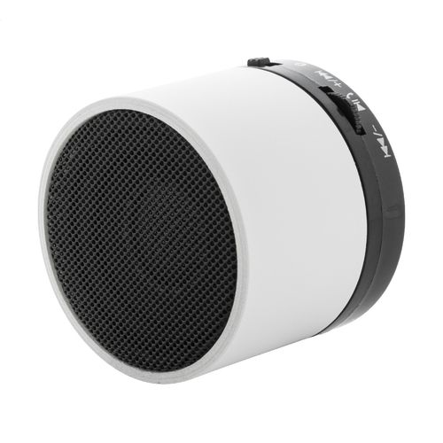Recycled ABS wireless speaker in rubberized housing with metal mesh and rechargeable battery (300 mAh). With hands-free call and micro SD MP3 playback functions. Including USB charger cable.