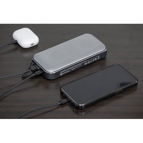 Make a lasting impression by engraving your logo on the high-quality aluminum surface with precision laser etching. This branded Bluetooth speaker with a powerbank is a perfect promotional gift,enhancing your brand’s visibility with every use.