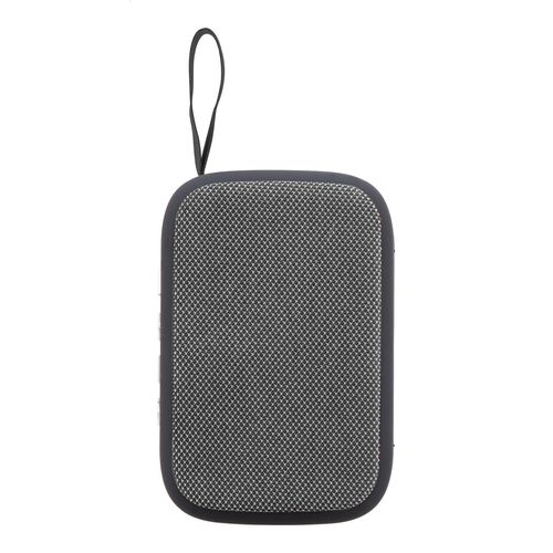 Wireless speaker in plastic housing with polyester speaker cloth and built-in rechargeable battery (250 mAh). Including USB charger cable.