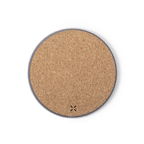 10W wireless charger of nature line and circular design. Case in combination of natural cork and wheat straw materials. Includes 1 metre long micro USB cable with charge status indicator, compatible with devices equipped with wireless charging technology. Large printing surface and presented in an attractive eco-design box.