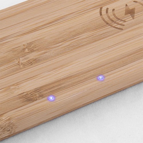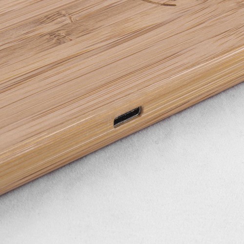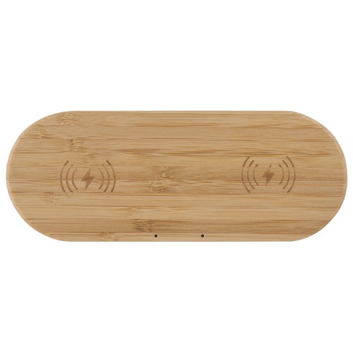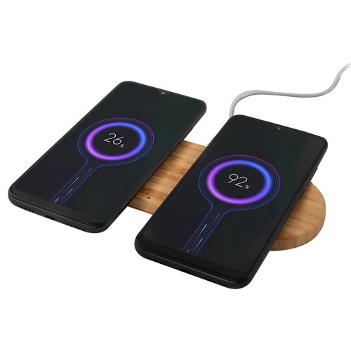 Wireless charging base made of bamboo for two devices. 5W power Includes type C cable.
