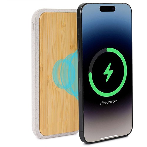 USB AND WIRELESS CHARGER 10000 mAh IN WHEAT STRAW+ABS AND BAMBOO