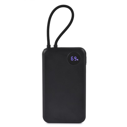 Equipped with an LCD display that shows the charge level, the charger is made from recycled ABS plastic, ensuring a reduced environmental impact.